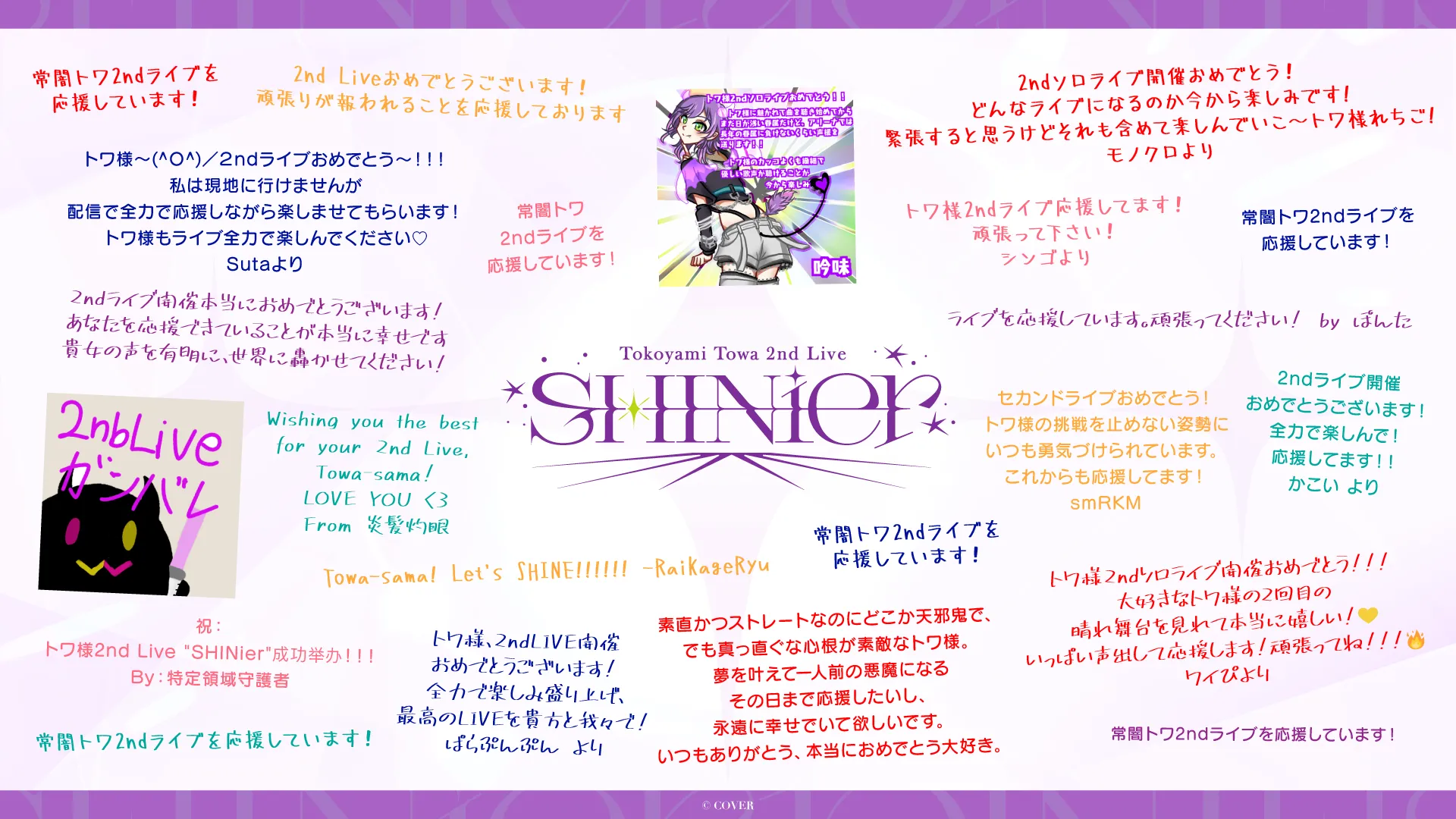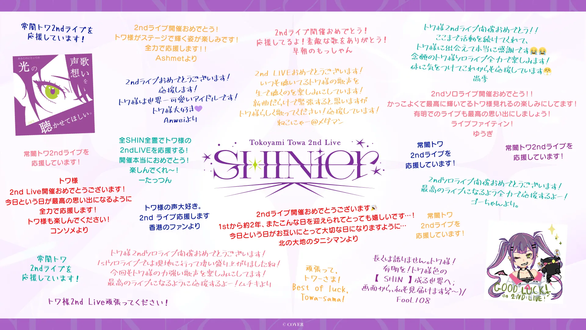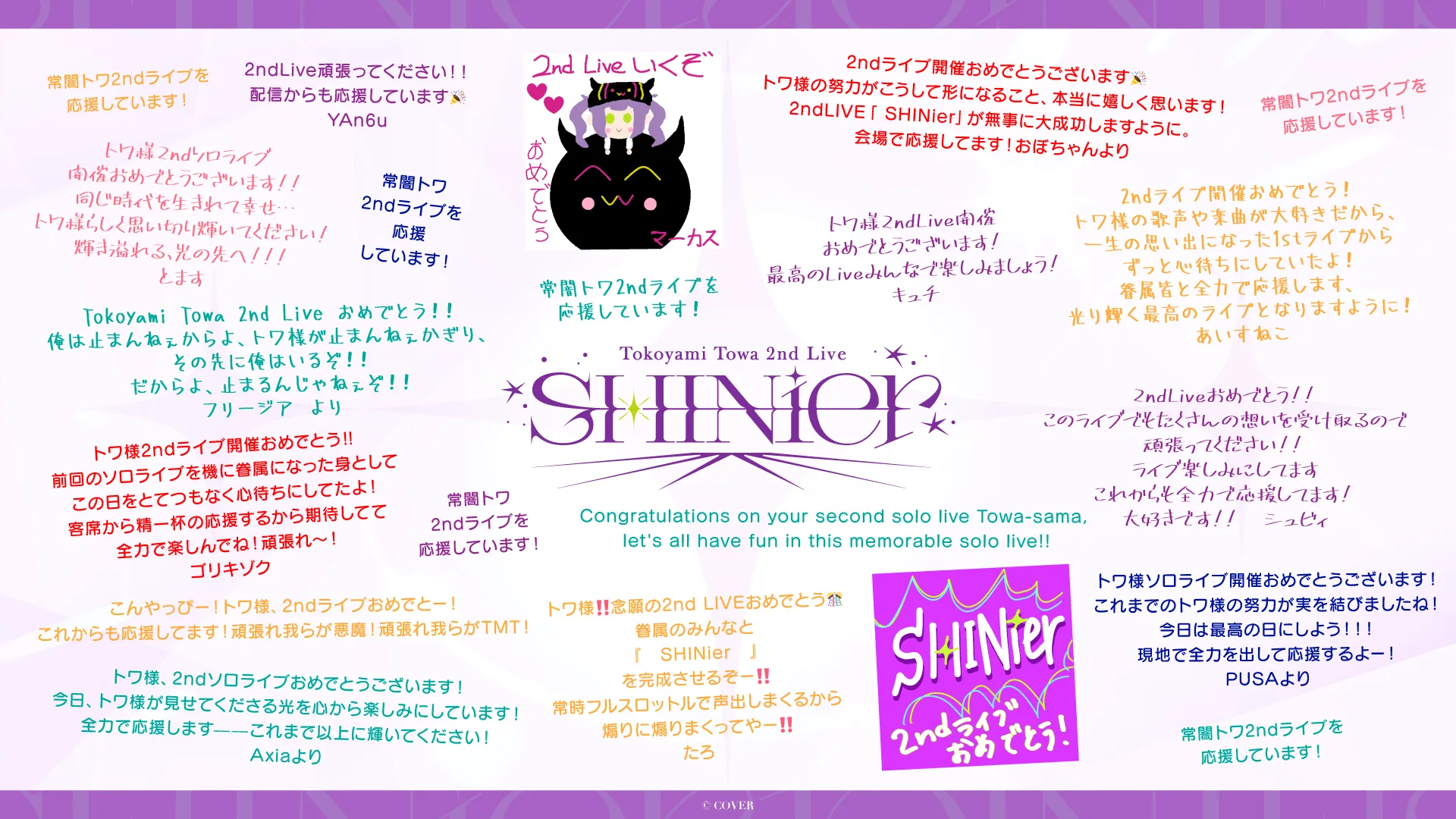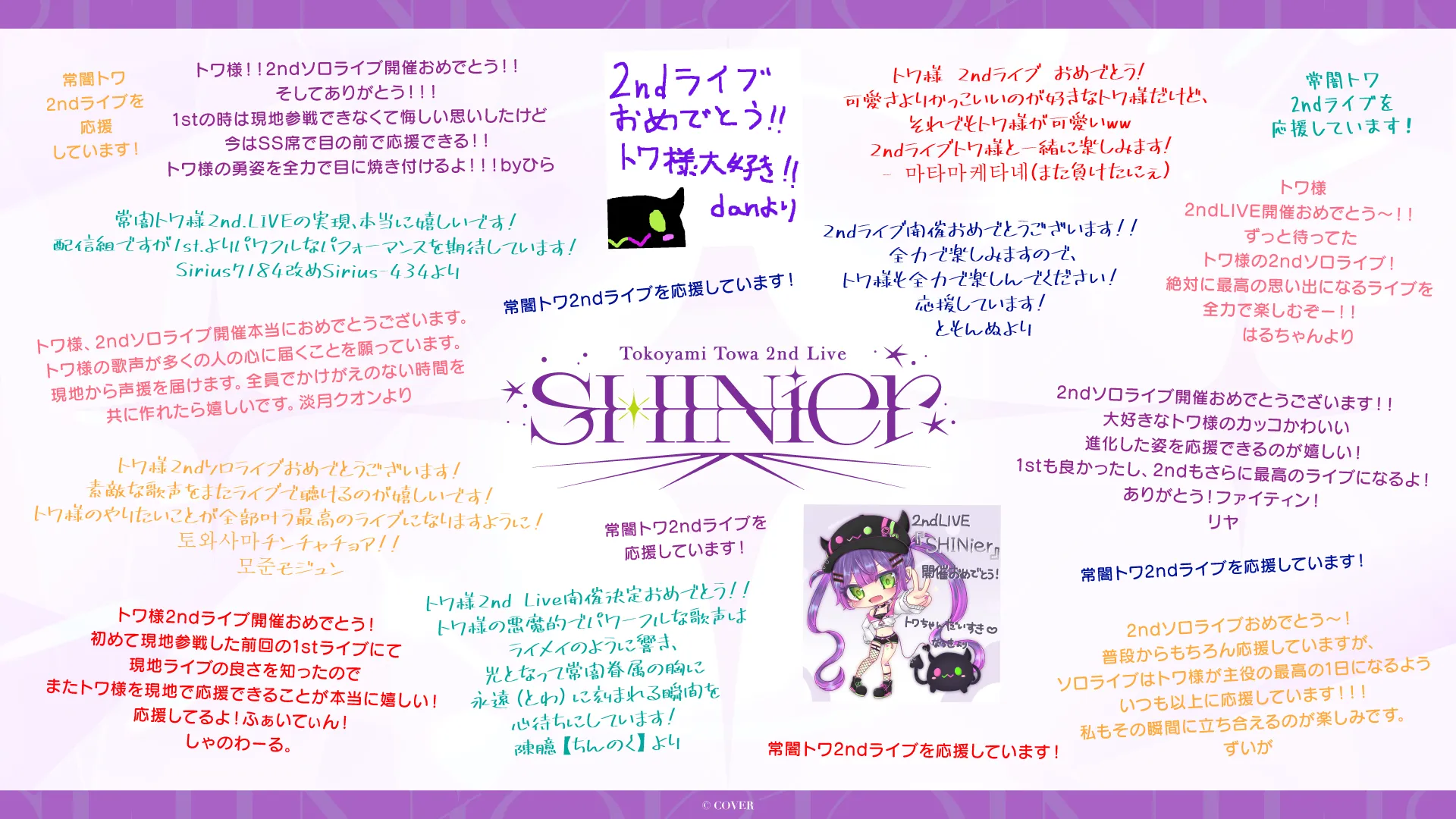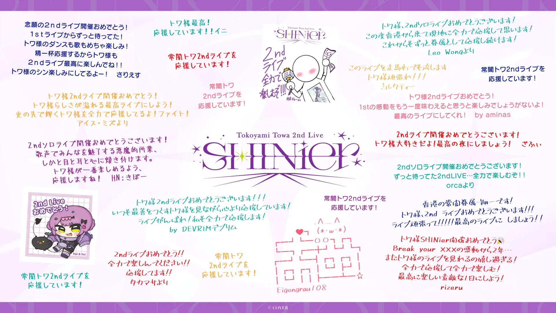 いよいよ明日開催される Tokoyami Towa 2nd Live “SHINier” にて、皆さまからお贈りいただいたメッセージを掲載します。