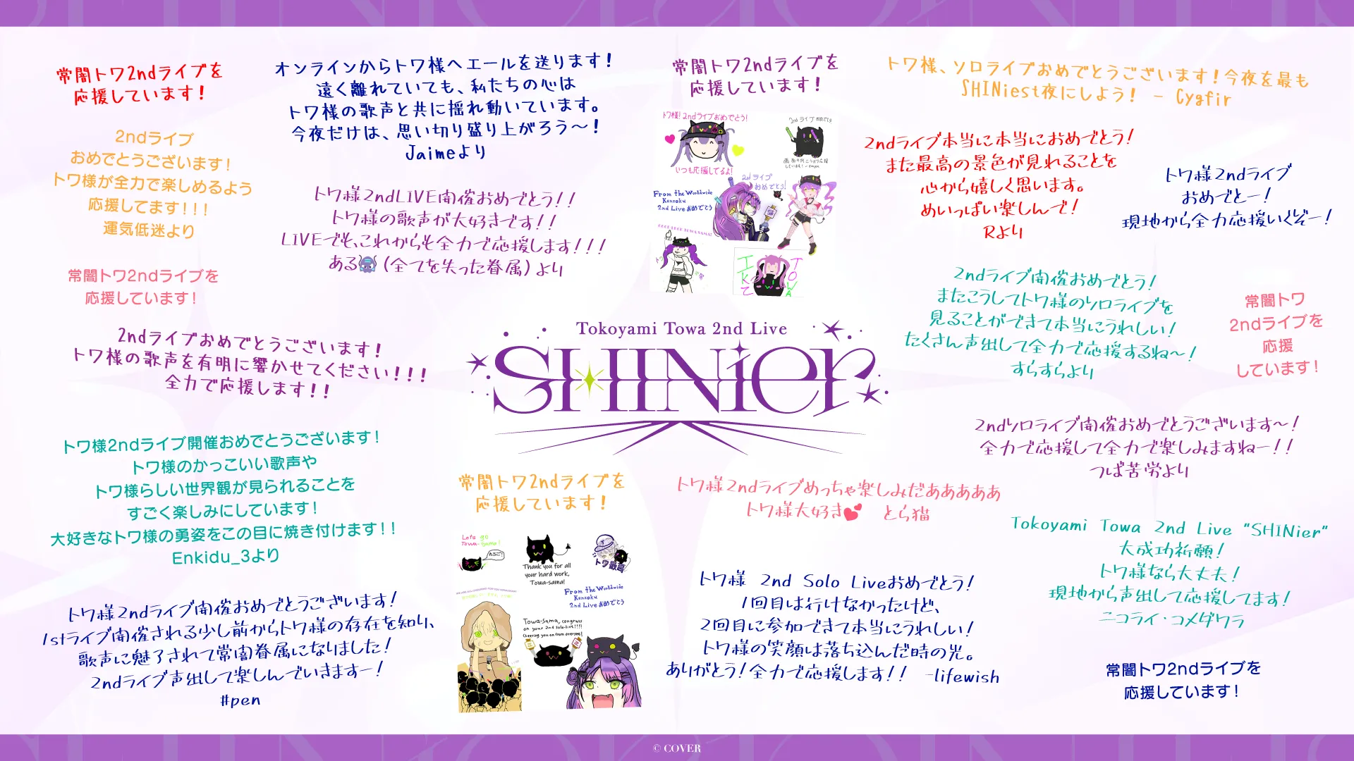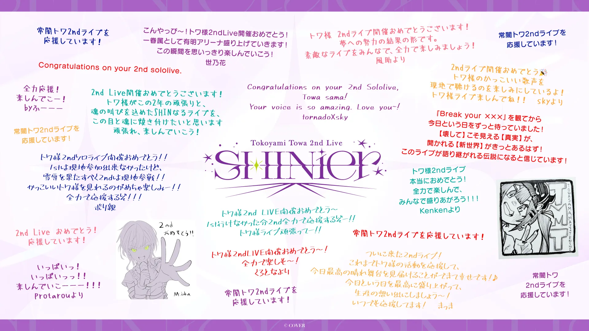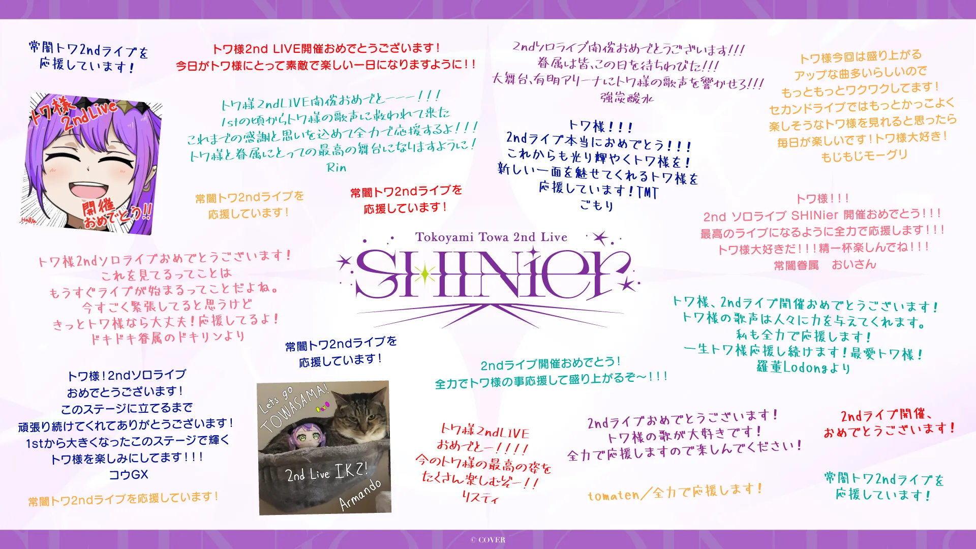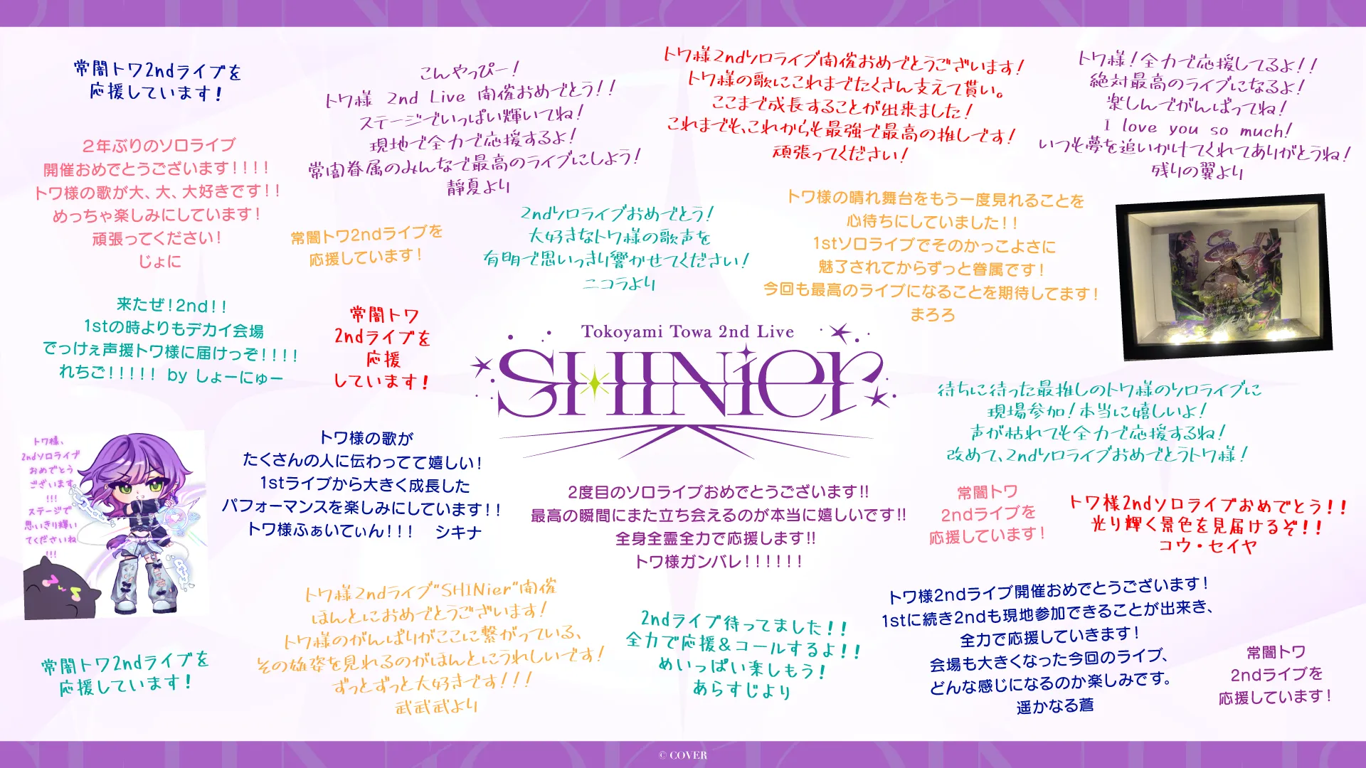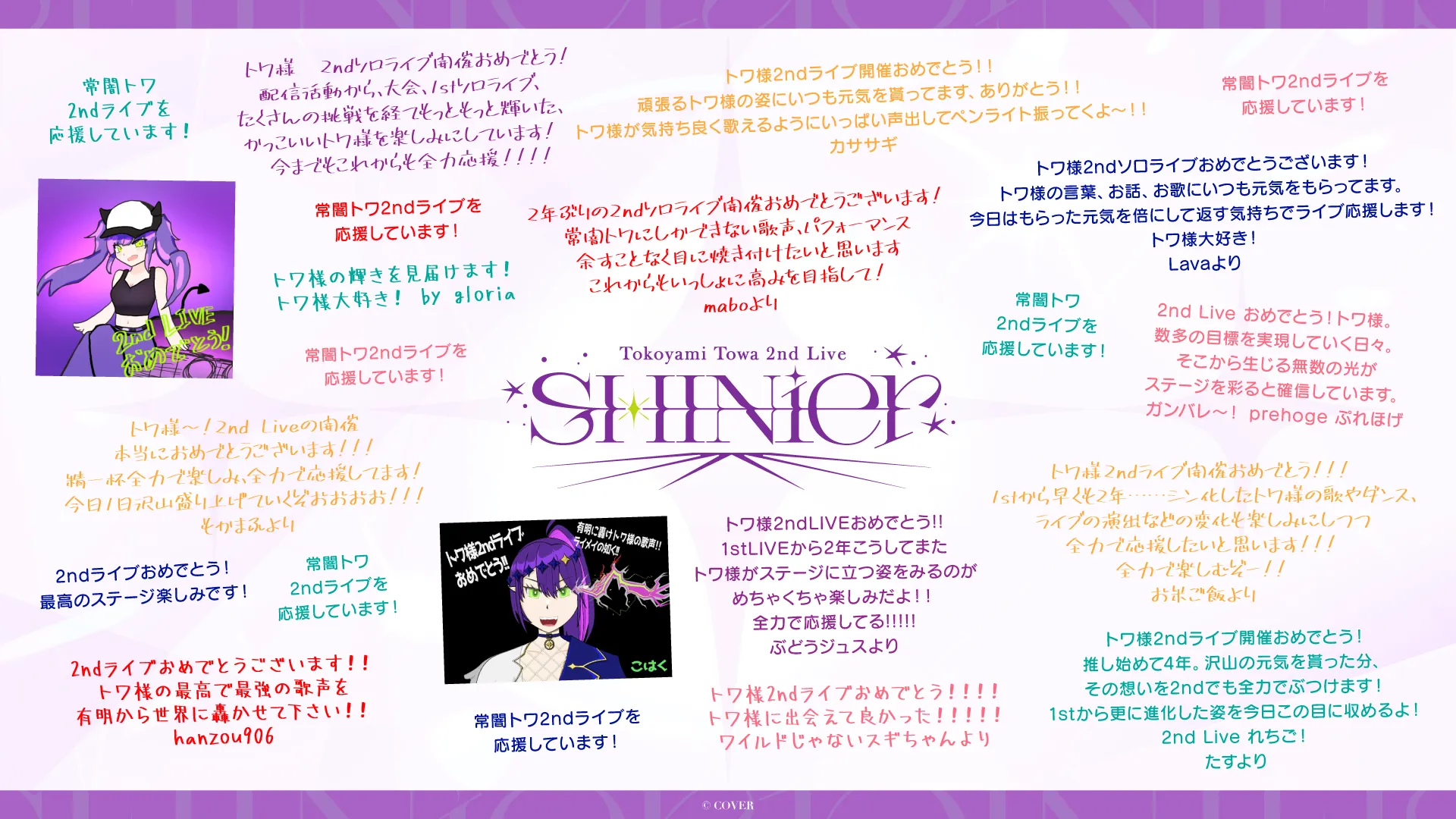 いよいよ明日開催される Tokoyami Towa 2nd Live “SHINier” にて、皆さまからお贈りいただいたメッセージを掲載します。