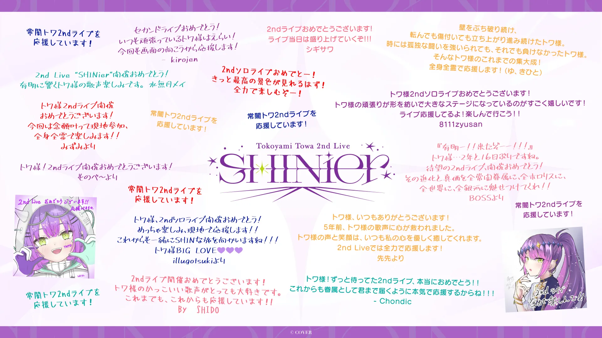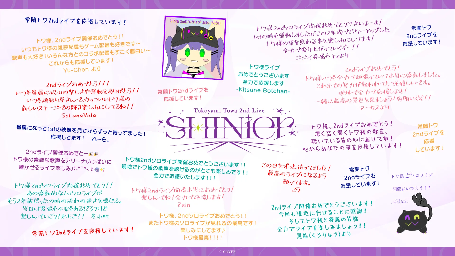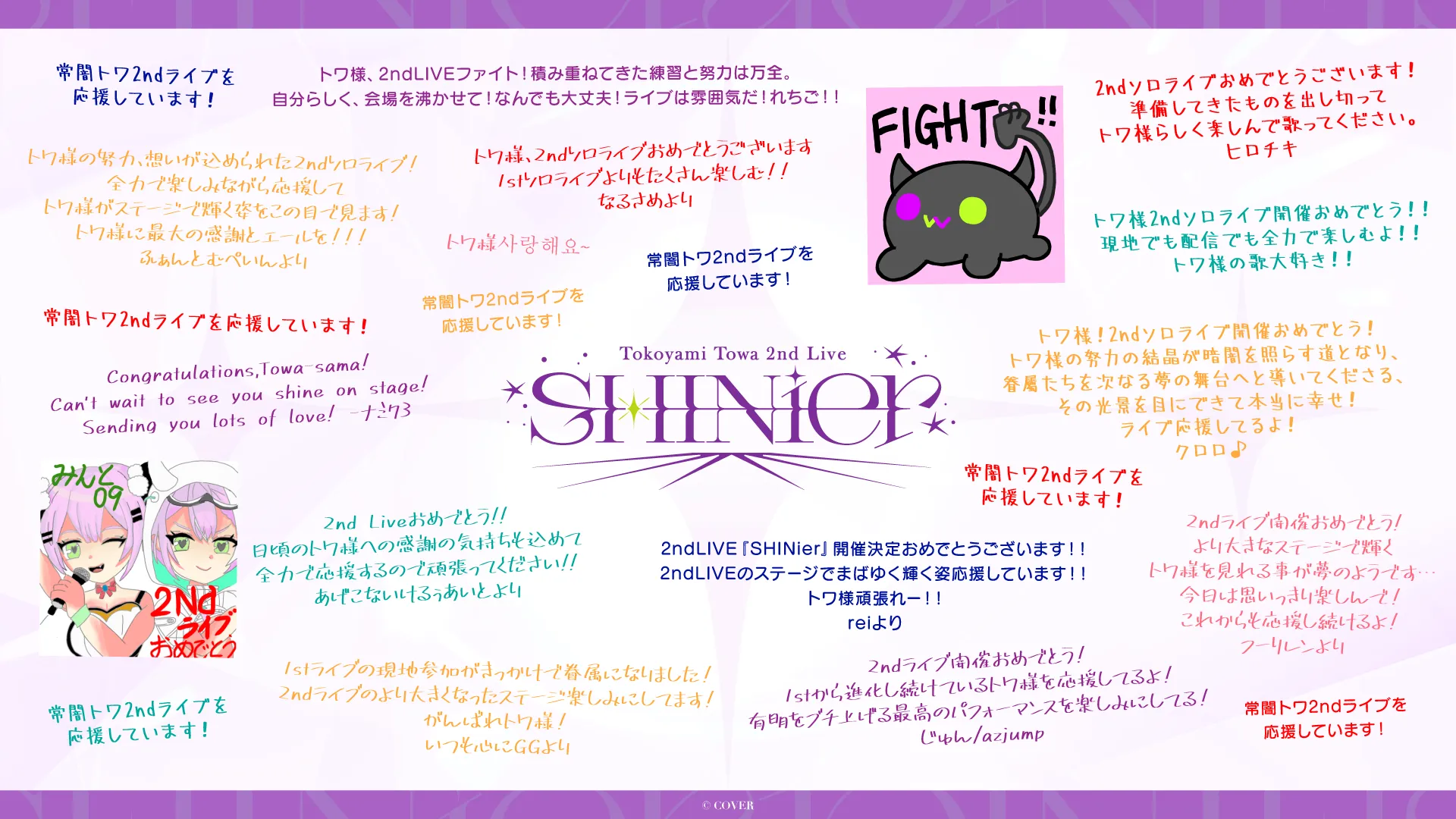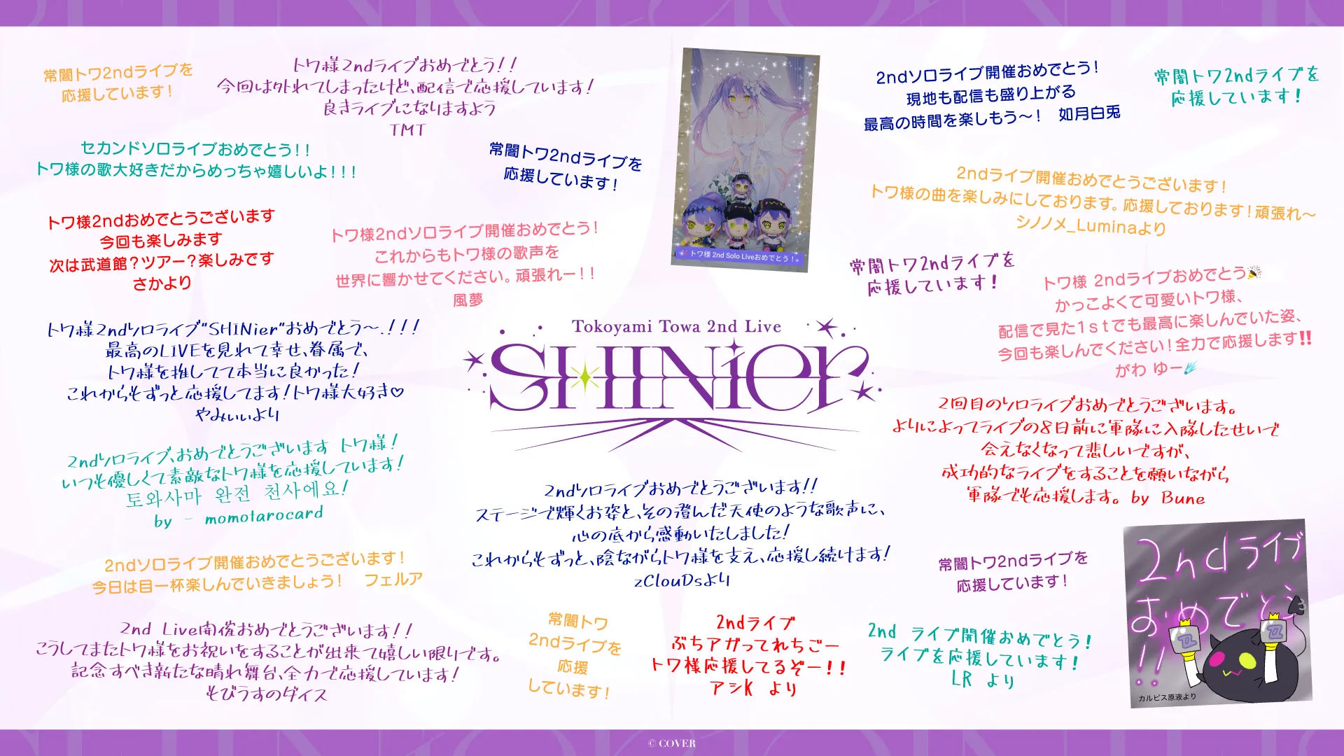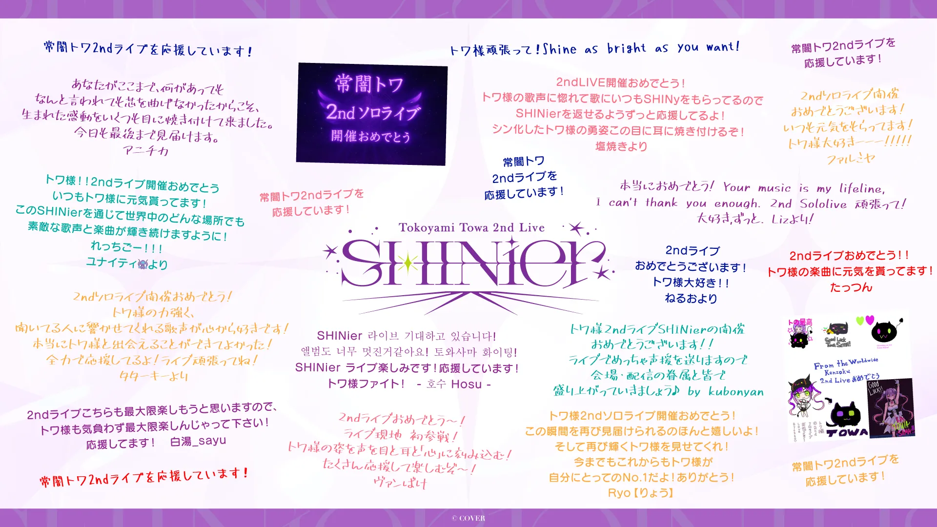 いよいよ明日開催される Tokoyami Towa 2nd Live “SHINier” にて、皆さまからお贈りいただいたメッセージを掲載します。