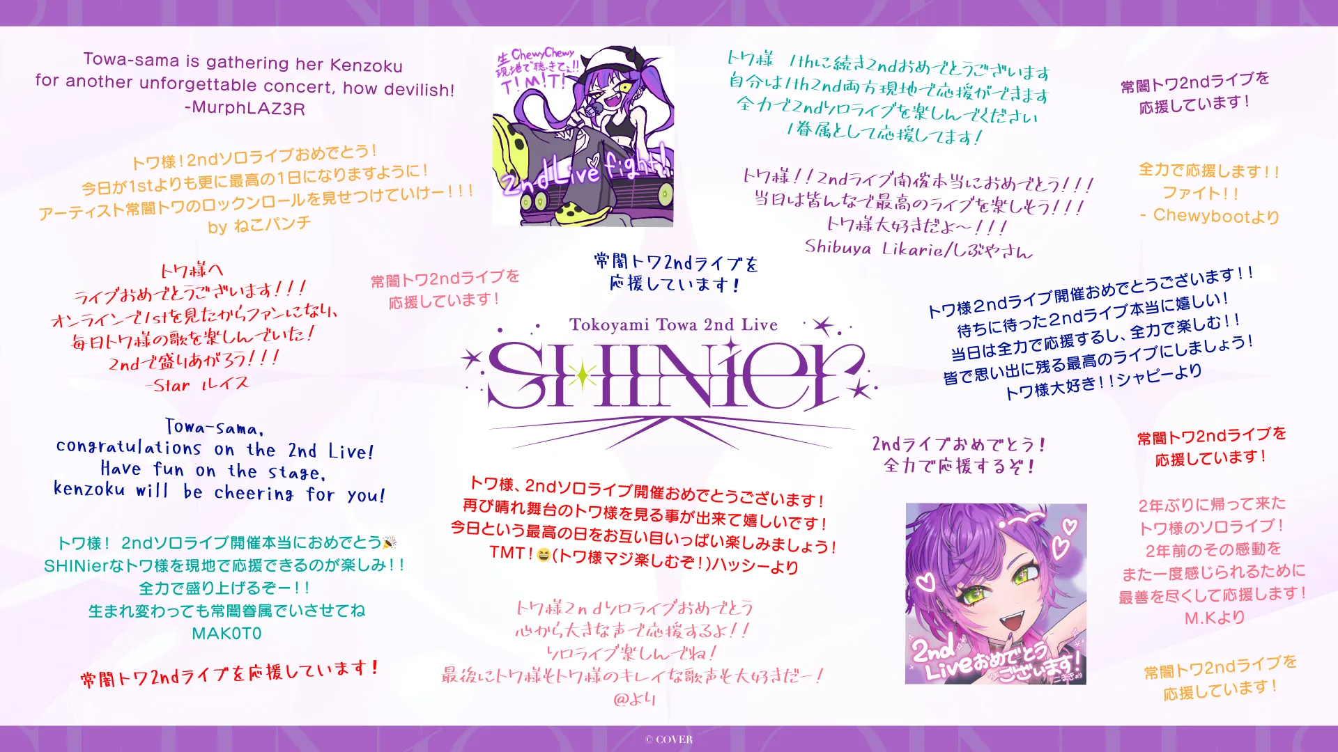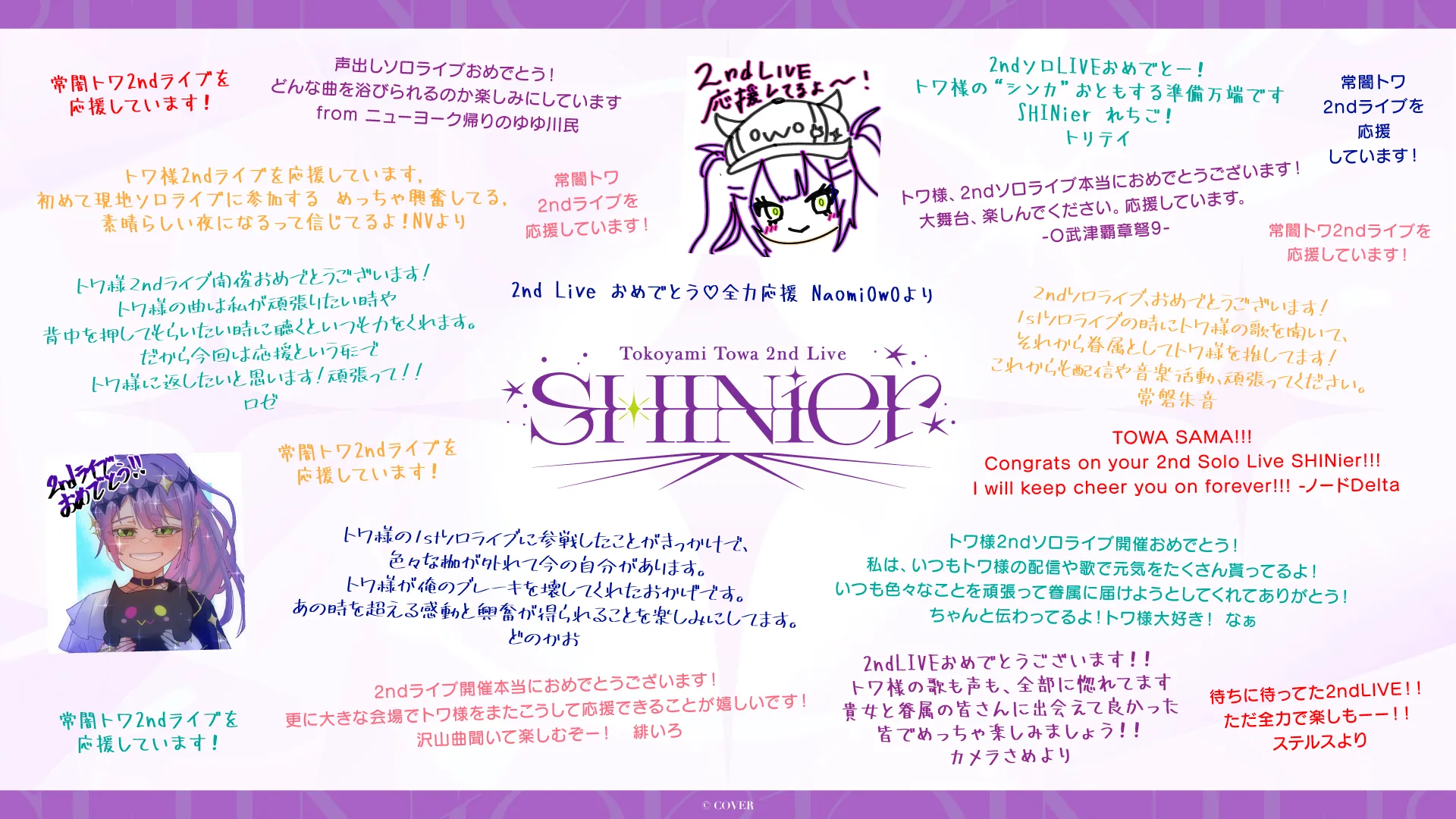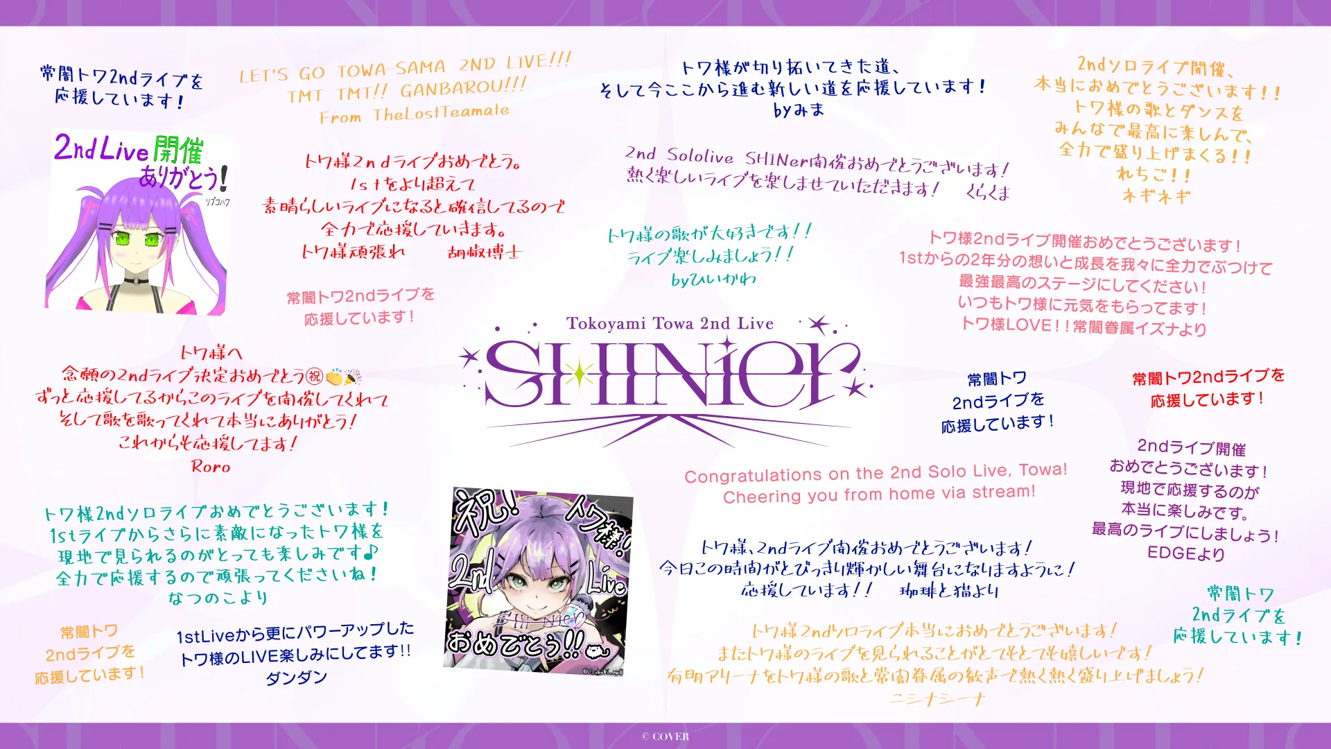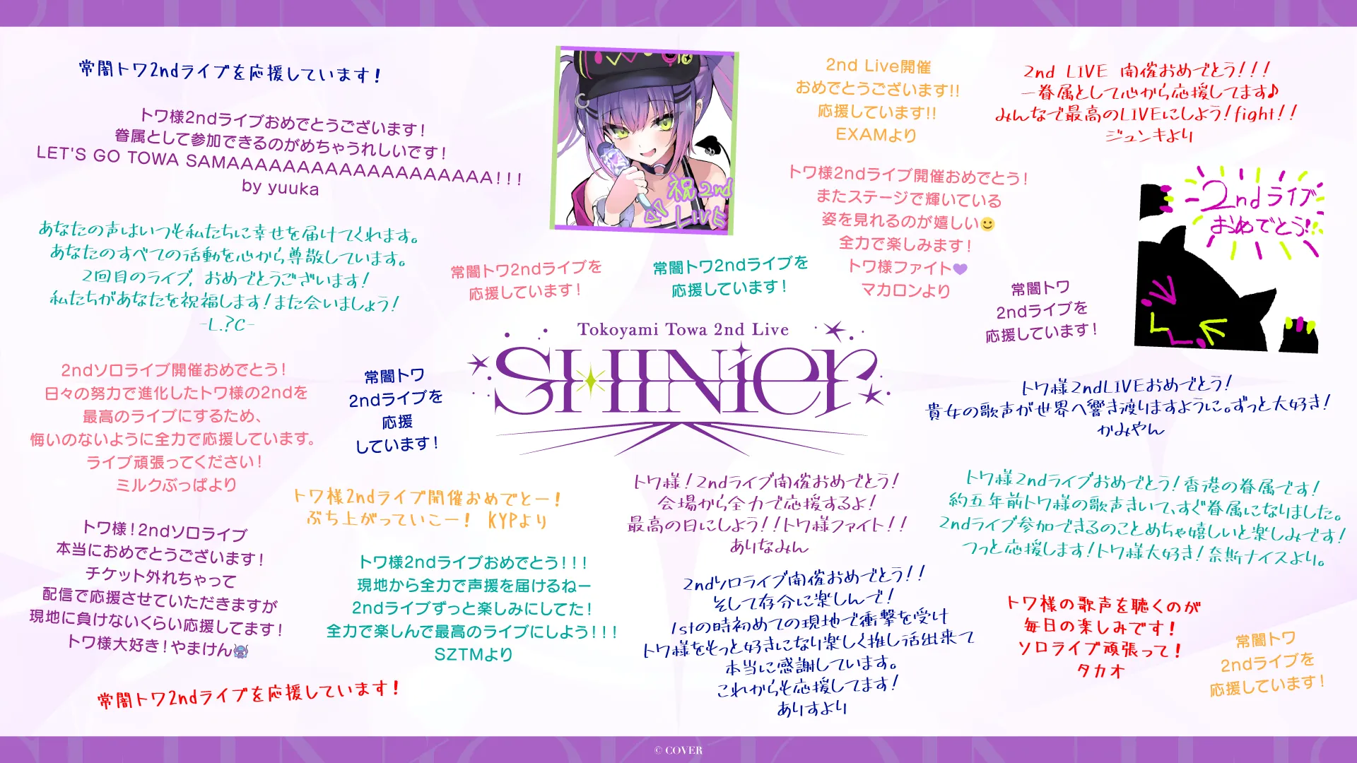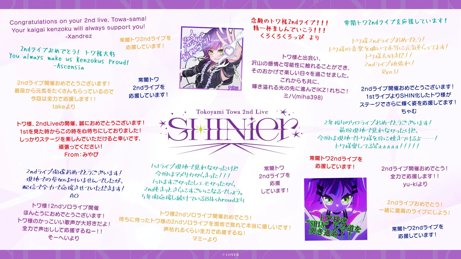 いよいよ明日開催される Tokoyami Towa 2nd Live “SHINier” にて、皆さまからお贈りいただいたメッセージを掲載します。